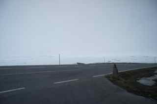 We got going again.  I thought at that stage I must be over the worst – wrong!   I didn’t realise I hadn’t actually started on the mountain pass at this stage – I’d just got up the bloody mountain.   I then had to drive for about 40km across the top of the bloody mountain and each step of the way the snow increased until there was nothing but a growing wall of snow and frozen lakes on either side of me   The landscape was pure white and the air was getting white too and thick.  Before long it was pretty much a  white out – I couldn’t see very far in front of me at all.  I kept going – I didn’t have any choice.  Talking to myself all the way.