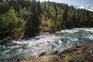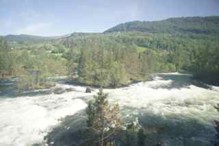 The drive from Sanjefyord, where the ferry docked in Norway, to Kongsberg – my first chosen direction wasn’t, to start with, too different from the drive in Sweden.   But increasingly the roads became more windy as the road followed the flow of a river.   Kongsberg was only an hour and half away – which was enough for the day after a two and half hour ferry ride.   As we came into Kongsberg there was a huge cascade of water right in the centre of the town – with an incredible amount of water gushing through.  I’d googled Kongsberg briefly a few days before but hadn’t seen any mention of it.   In any other country I’m sure  it would have been a bit thing – but in Norway I guess there are so many waterfalls this was nothing particularly notable  I later learnt that it was quite famous with kayakers and rafters – I’m not surprised.   After my one white water rafting experience, at the source of the Nile in Uganda, I will not be trying it again.