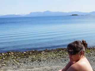 On the second night there as I was sitting watching the sunset I got a tap on the shoulder.  It was an english bloke, Kev, who had spotted Beryl’s english licence plate.   He invited me for a drink in his caravan, with his dog Eddie.  Several hours later and several beers later I clambered up to bed in the tent.  It was the first time in weeks I’d had someone to really chat to – so I’m afraid I talked a lot!  His mate Andy was trying to sleep, unfortunately between my big gob and the music he didn’t get too much sleep   So he told me the following night, and proved it by repeating most of the conversation!   He forgave me and we had a second night chatting and listening to music.  They both live and work here – it was good to pick their brains about the roads and what routes I should take.  There was a suggestion of going up to the arctic circle.  I think I’m going to give that a miss – but it was brilliant to have a laugh and a natter.