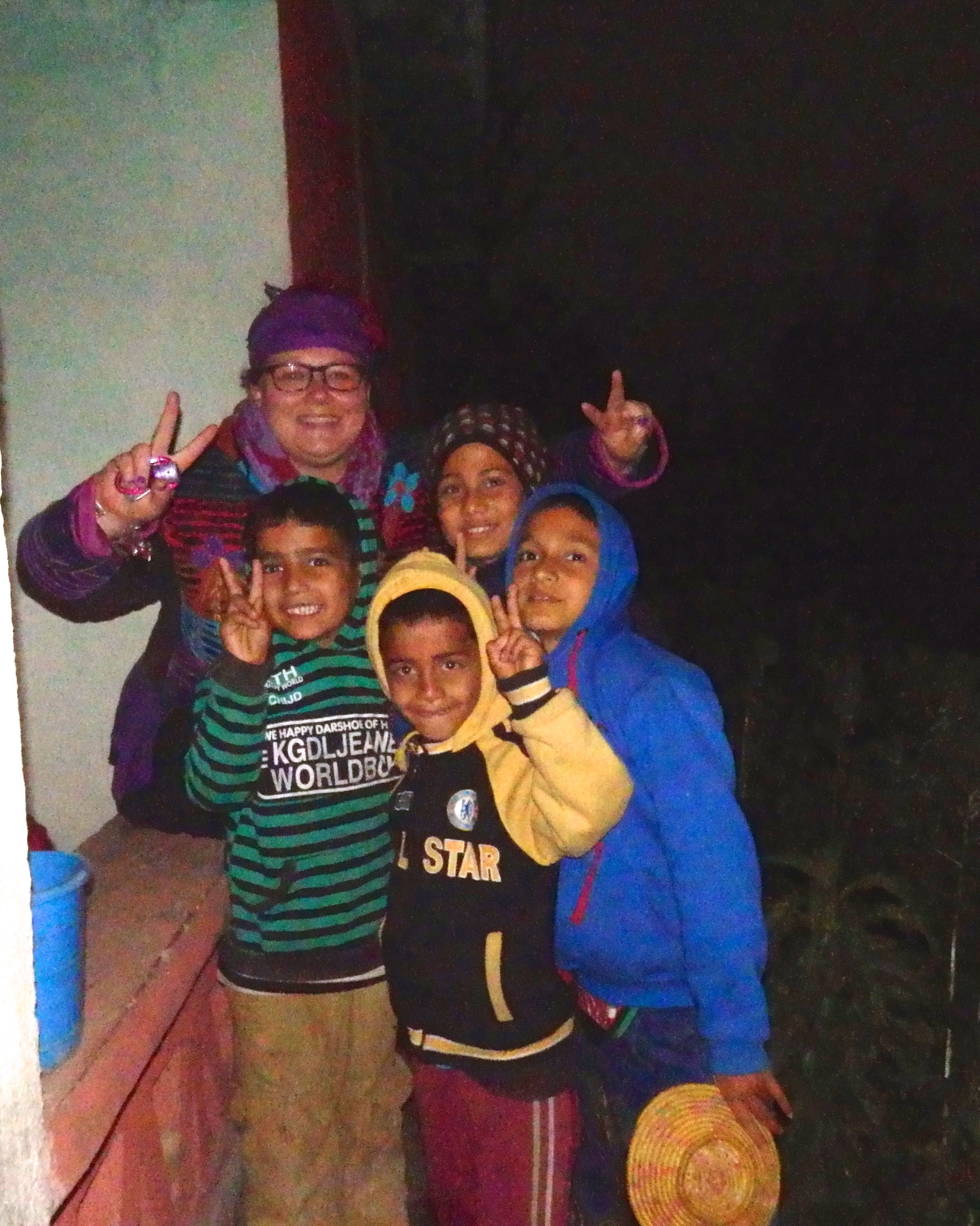 But whilst I was lying in bed I could here drums and singing. I hesitated, I wasn’t sure whether to go or not but I really wanted to, it didn’t take me long to grab my torch and head out into the dark, and I am so glad that I did. You couldn’t see much to start with but as I approached the family spotted me and welcomed me in and gave me a chair. An older man came to chat, what country was I from, England, ahh a great country, so is Nepal I reply. There are lots of women sitting crossed legged on the porch area, some playing the drums, others a tambourine, or bells and everyone was singing. Another lady, with lots of coal eye liner on grabs me up to dance, oh god do I have to, yes I do! I manage a few twirls but I can’t do the amazing hand movements they can and sit down as soon as I can. I move off the chair before long to the edge of the porch where I can sit on a wall right by the ladies singing and playing.