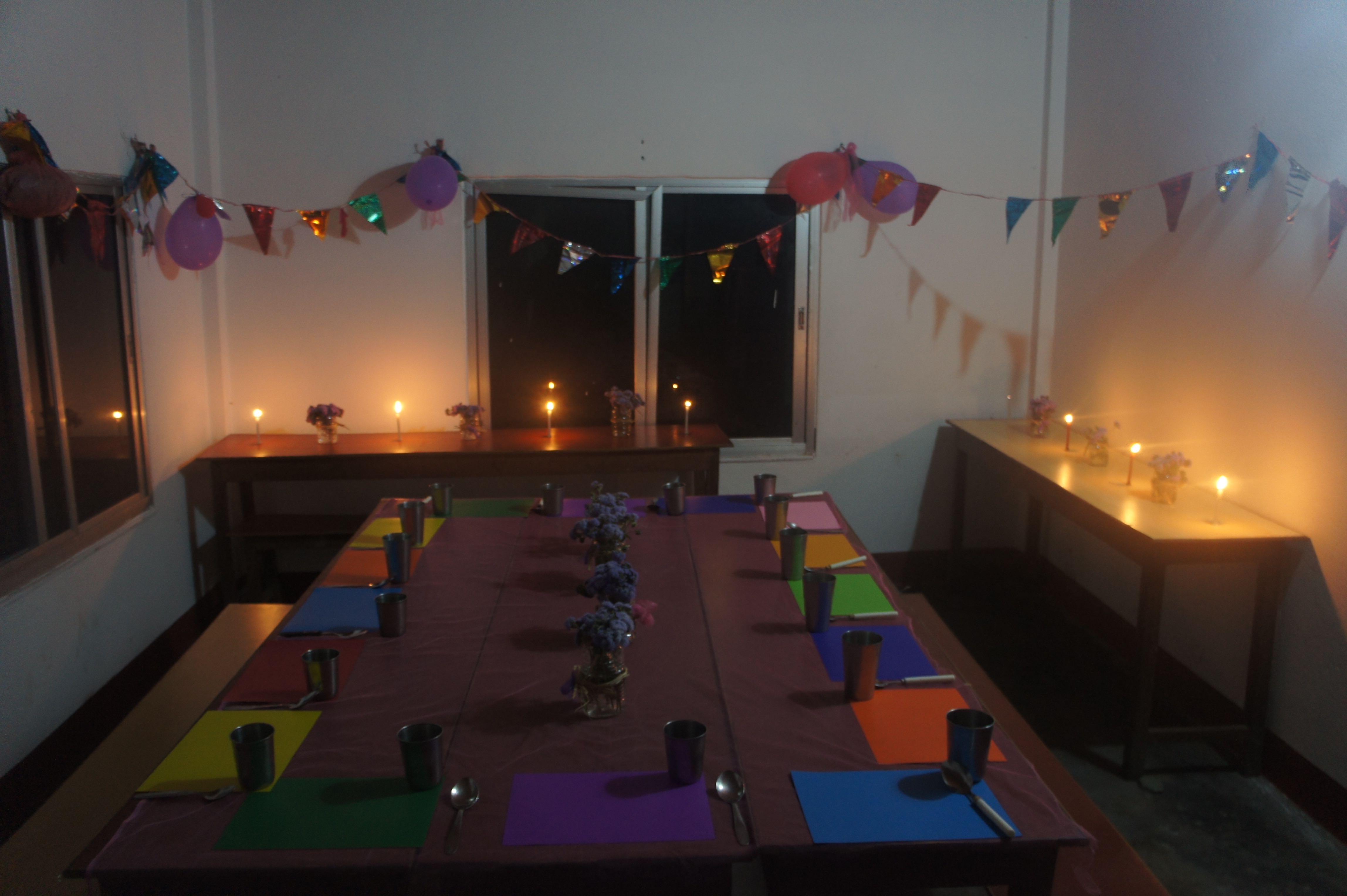 The other volunteers and I threw a party for the children on our last Friday night. We decorated the dining room, with bunting, balloons flowers and candles, the benches were pushed together to make a big table. Normally everyone eats facing the wall with their head down and goes as soon as they have finished and washed their plates, so it was great to have everyone eating together. It would be nice to think they might do it like this occasionally but I doubt it – its not up to us to force our habits on them. But that said they seemed to really enjoy the evening, and our food, veg chilli with pasta, and trifle for desert. You are very restricted on what you can buy so it felt like quite an achievement to pull this together.