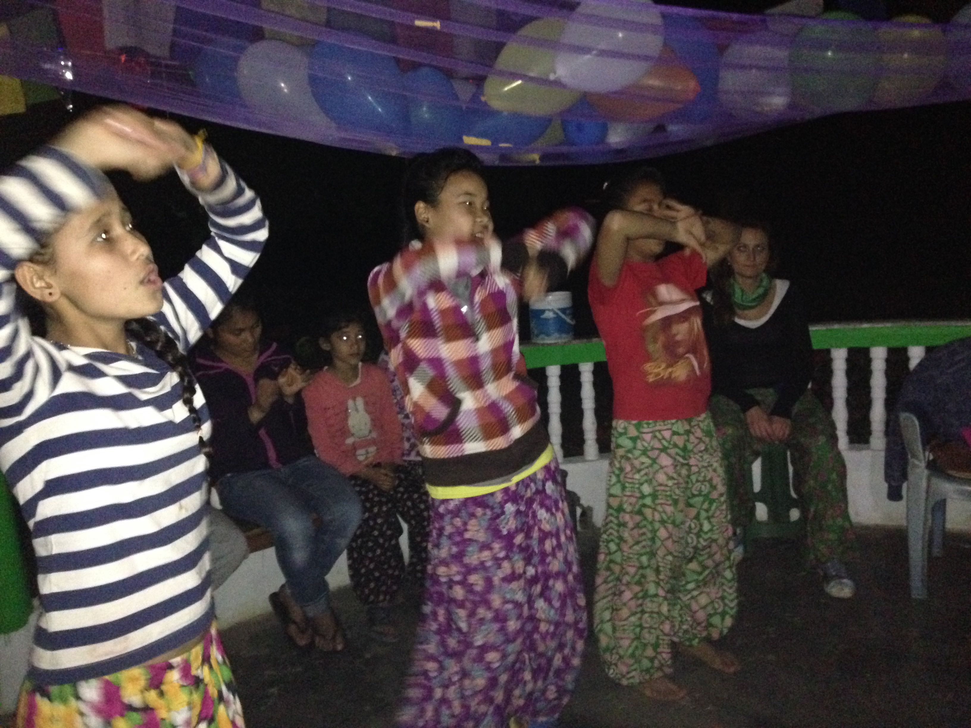 After dinner we moved out to the veranda where there were more candles and flowers in vases I’d made from the bottom of water bottles with straw wrapped around them. The children love the flowers and say they will pick some more when these ones die. It was then time for dancing, everyone did a little turn – we, the three volunteers, even did the macarana, very poorly, but we gave it a go!