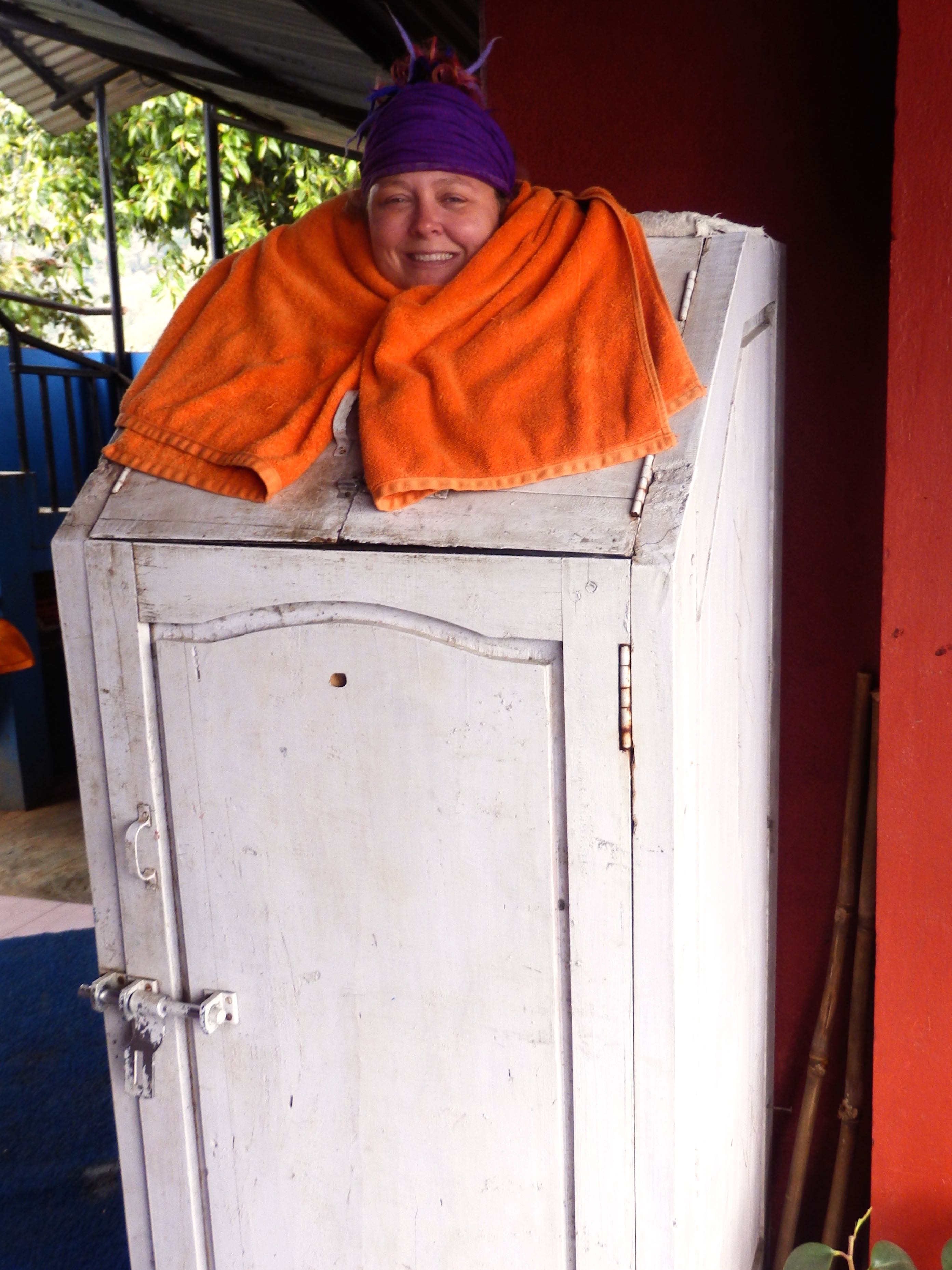 To help my aching body I had planned a massage before lunch, but first it was steam bath time. Whatever picture you have in your mind it is most likely wrong. That is unless you are picturing a wooden closet with a stool in it and a hole for your head. In the steam bath the day before I had only lasted a few minutes and not the full seven, it was bloody hot on my neck and it felt weird being locked in a box. But that day I was the second person in it, instead of sixth person as I’d been the day before, so I managed the full seven minutes and an additional 5 minutes.